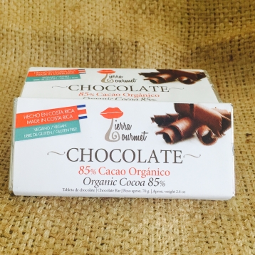 Organic Cocoa 85%. Handcrafted in Costa Rica, Vegan and Gluten Free. Stimulant properties such as high in antioxidants (contains niacin, vitamin A, E, and C, minerals such as magnesium, phosphorus, copper and potassium) and its positive influence on mood, vasodilation decreases blood pressure are added benefits. The basic rule is that the darker the chocolate the higher the cocoa content and consequently more beneficial effect on health.